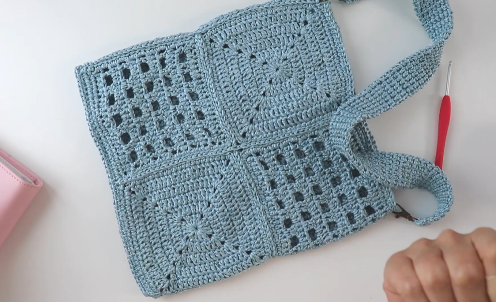- Weave in all remaining ends very carefully. Since the bag is openwork, knots can show through.