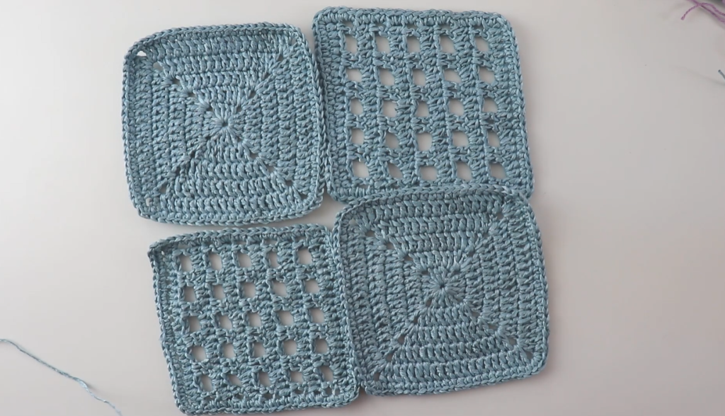 - Panel Creation: Lay two squares side-by-side (Square 1 and 2). Using a tapestry needle and yarn, whipstitch or mattress stitch the inner edges together neatly to form a 15-inch x 7.5-inch rectangle. Repeat for Panel B (Square 3 and 4).