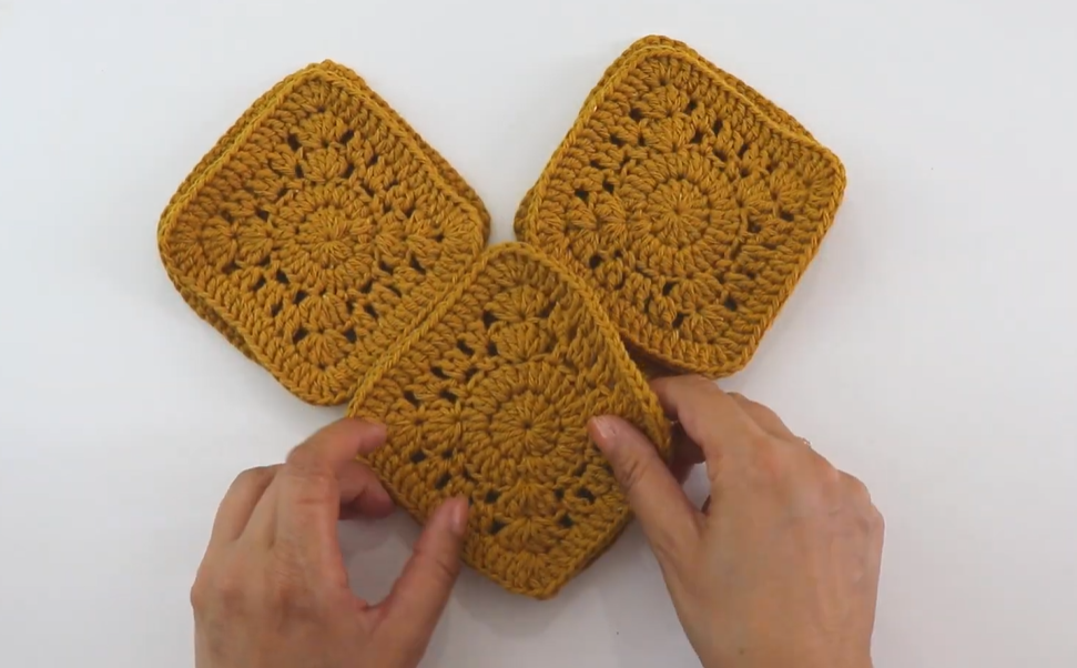 Fasten off. Weave in all ends on the 4 squares.