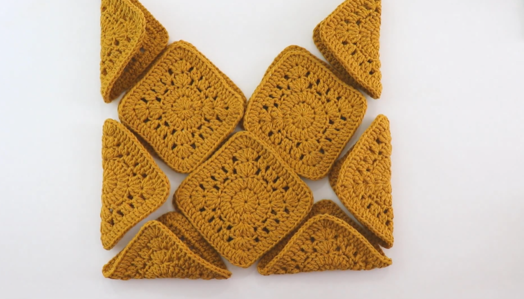 - Skill Level: Intermediate. Requires working in the round to create a large motif, accurately joining squares, and performing the diagonal folding and seaming.
