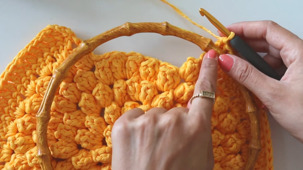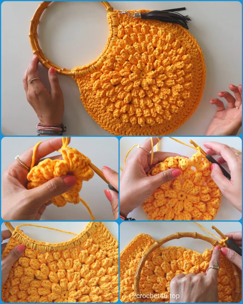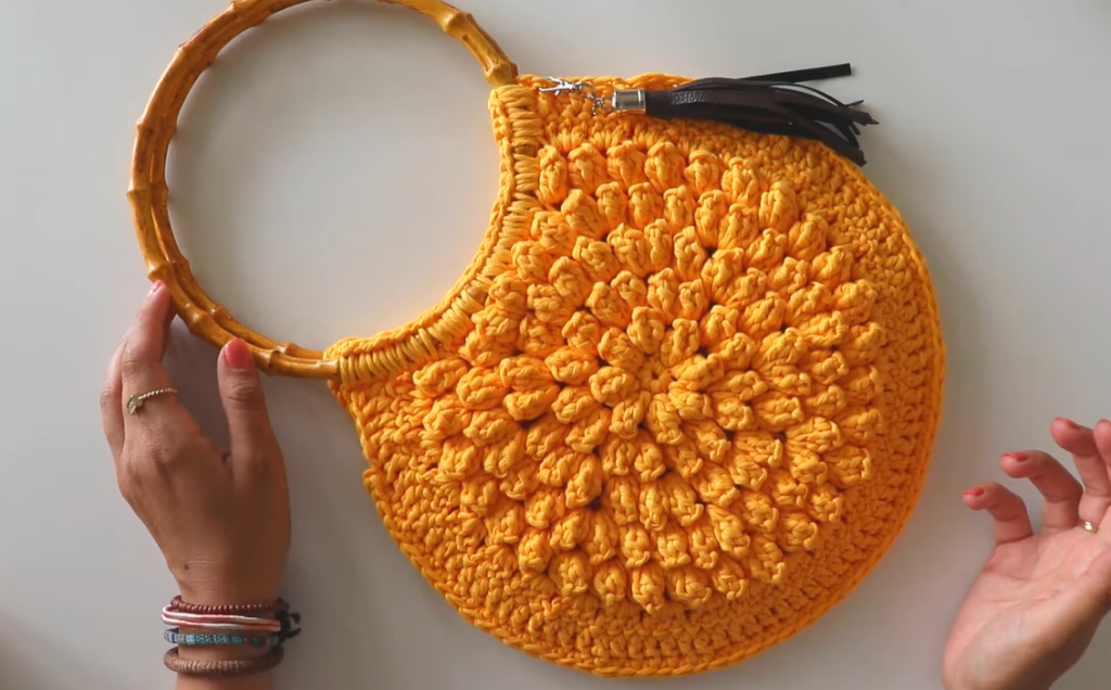 - Wet Blocking: Although the puff stitches create texture, a light block can help flatten the final shape and define the circle. Lightly spray the completed bag with water or a fabric stiffener, and let it dry flat. Do not wet block the bamboo handle.