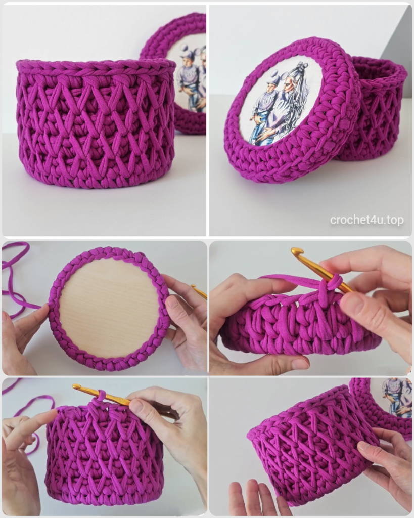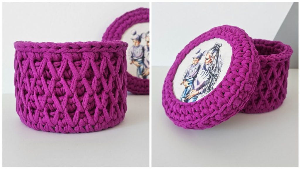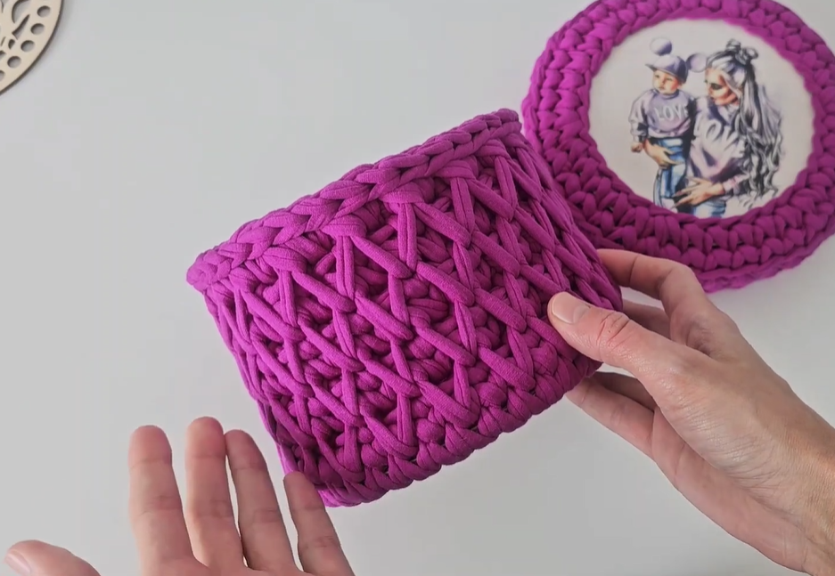 This project is made using thick T-shirt yarn, which gives the box its necessary rigidity. The star of the show is the Diamond Weave Stitch (a type of extended tapestry crochet) that creates a dense, gorgeous surface. This pattern will guide you through achieving that firm, woven texture and constructing the professional-looking lid.