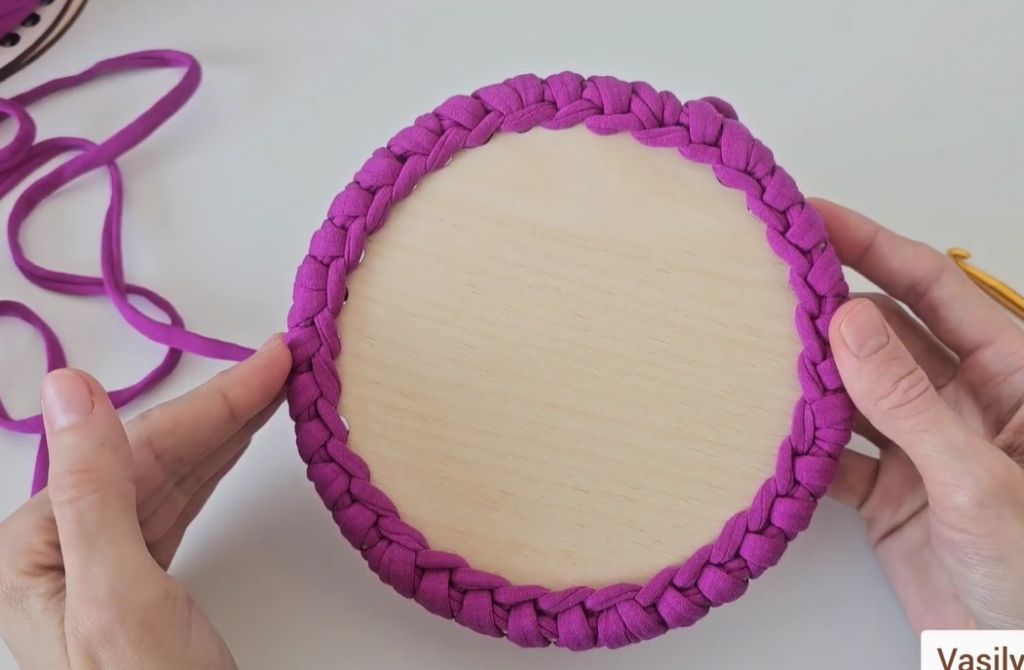 - Lid Round 1 (Joining): Using the second wooden piece and your smaller hook, work 1 sc into every hole around the edge. Ensure the stitch count is the exact same as the body (e.g., 48 sts). Do not join.