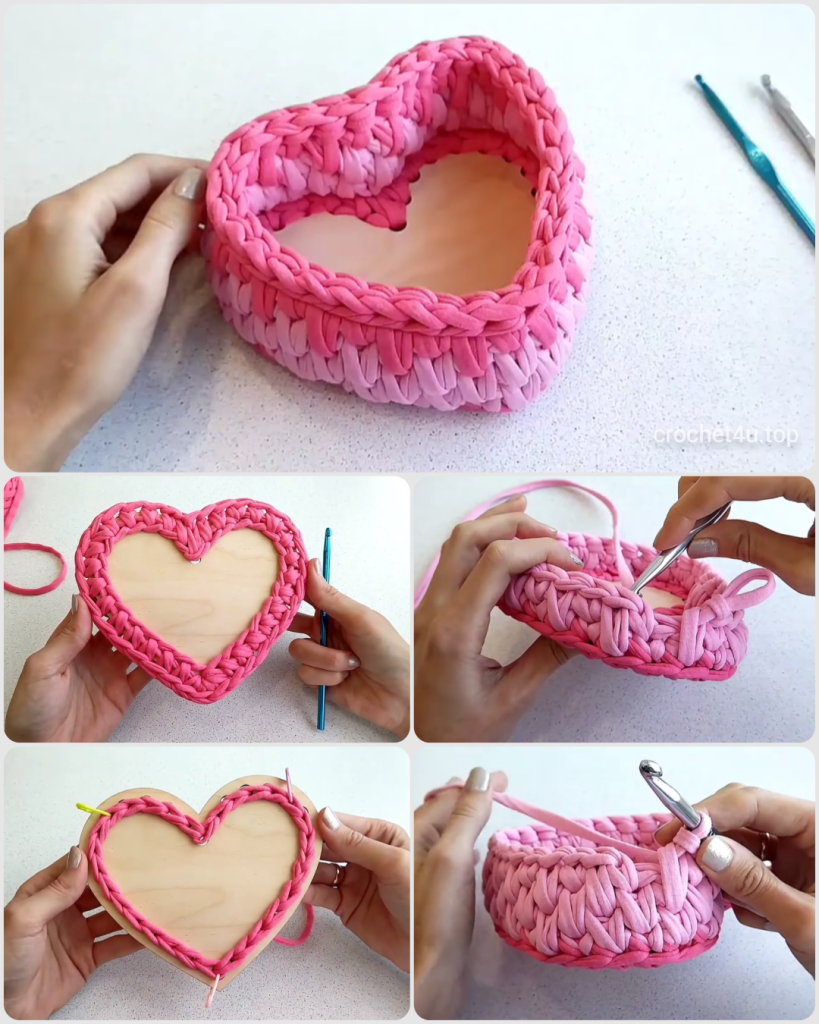 This design is challenging but incredibly rewarding. It utilizes T-shirt yarn (or similar chunky cord) and the dense Tapestry Single Crochet (tsc) stitch, which is the key to making the walls stand up perfectly straight. The heart shape is best achieved using a pre-cut wooden or acrylic base to handle the difficult foundational curves, and the pattern will guide you through the crucial shaping rounds required to maintain the crisp, lovely silhouette.