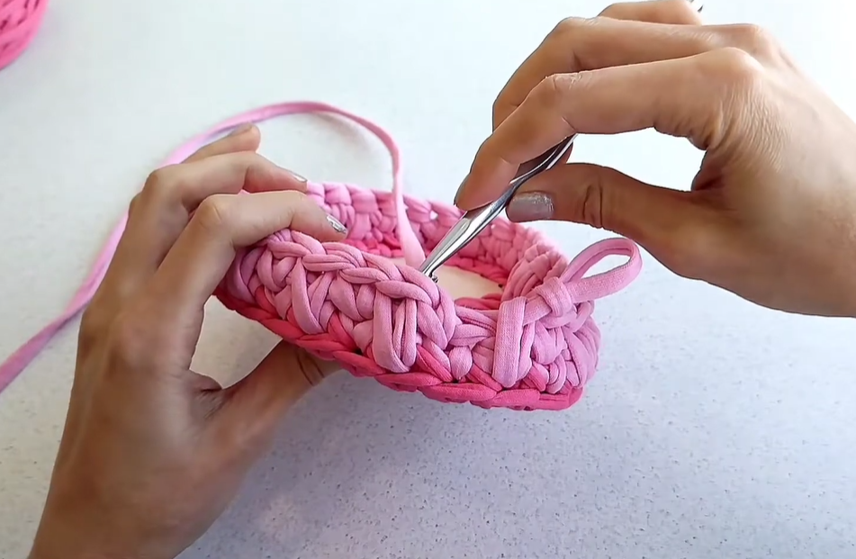 - The Reverse SC creates a beautiful, rope-like border that locks the rim in place.