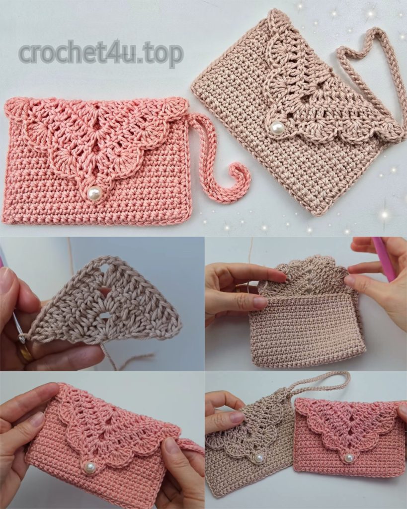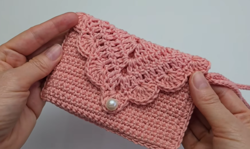- Button Attachment: Line up the center ch-3 loop on the flap with the corresponding point on the wallet body. Sew your decorative pearl or button securely to the center of the wallet body.