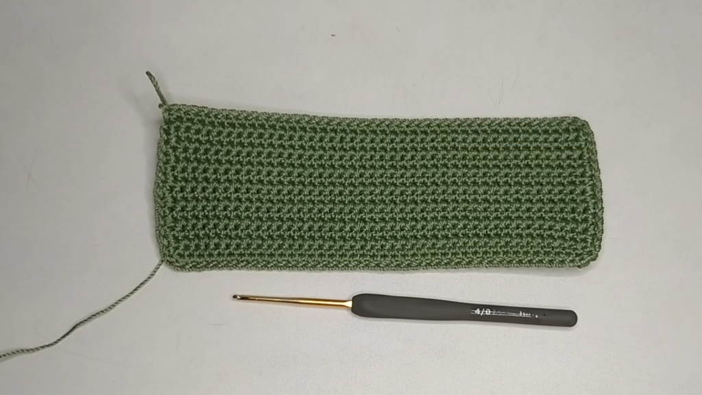 We start with a flat, firm base worked in rows of Single Crochet, then edged in the round to set up the body’s stitch count (a multiple of 3).