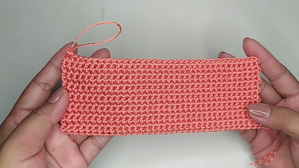We start with a flat, rigid base worked in rows of Single Crochet, then edged in the round to set up the body’s stitch count. The final stitch count must be a multiple of 4 for the motif pattern.