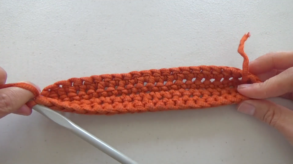 - Rotate your work to crochet along the opposite side of the starting chain: sc in each of the next 21 chs.(44 stitches total)