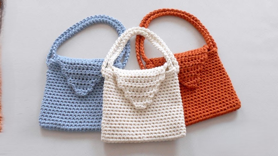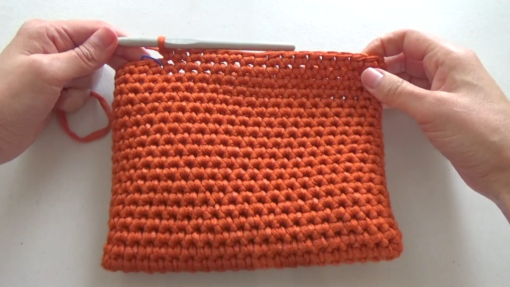 - Sc until you reach the nearest side/fold of the bag structure (in the video, this was 5 sc).