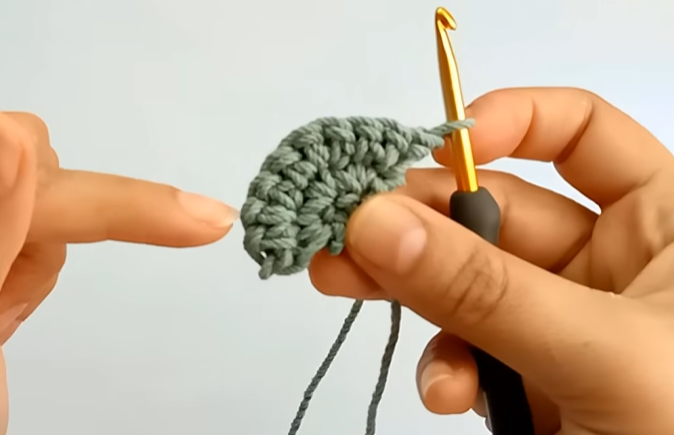 - Row 3: [1 SC in the first st, 2 SC in the next st] — Repeat across. (9 sts). Ch 1, turn.