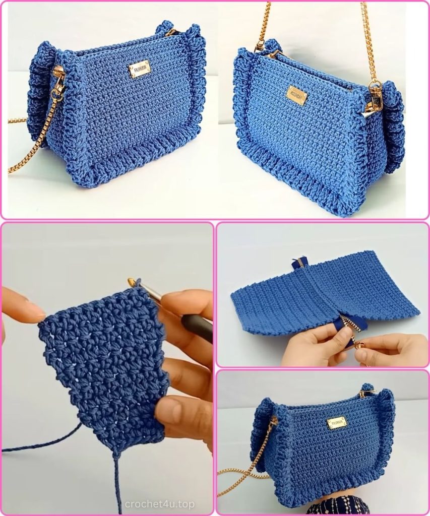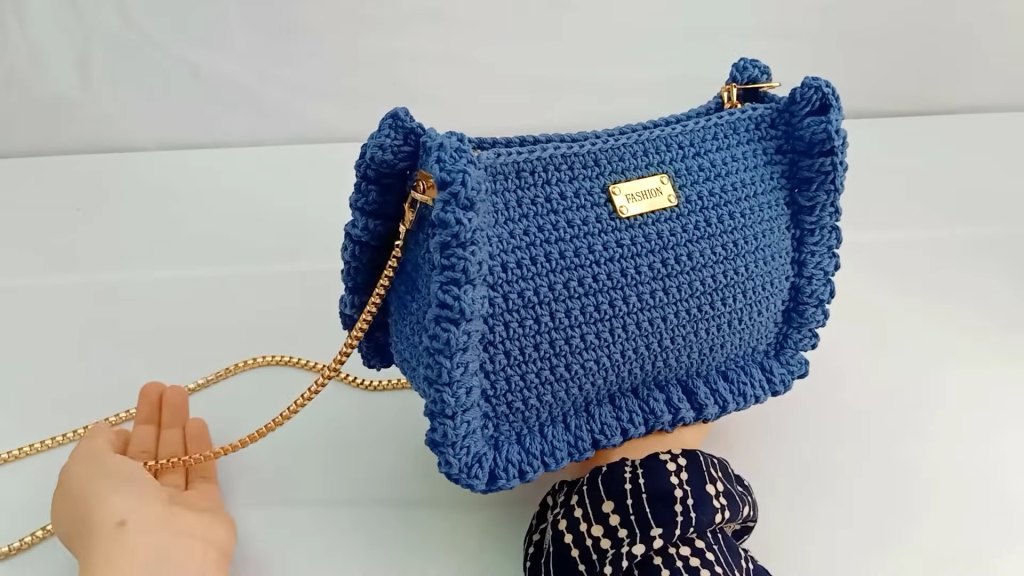 - Result: This creates a dense, curly ruffle that frames the bag beautifully.