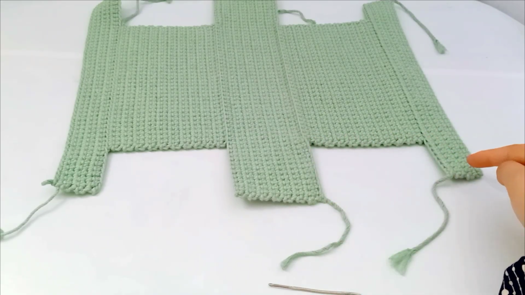 - Finish: Fasten off. You now have a tall rectangular flap extending from the center of your first side panel.