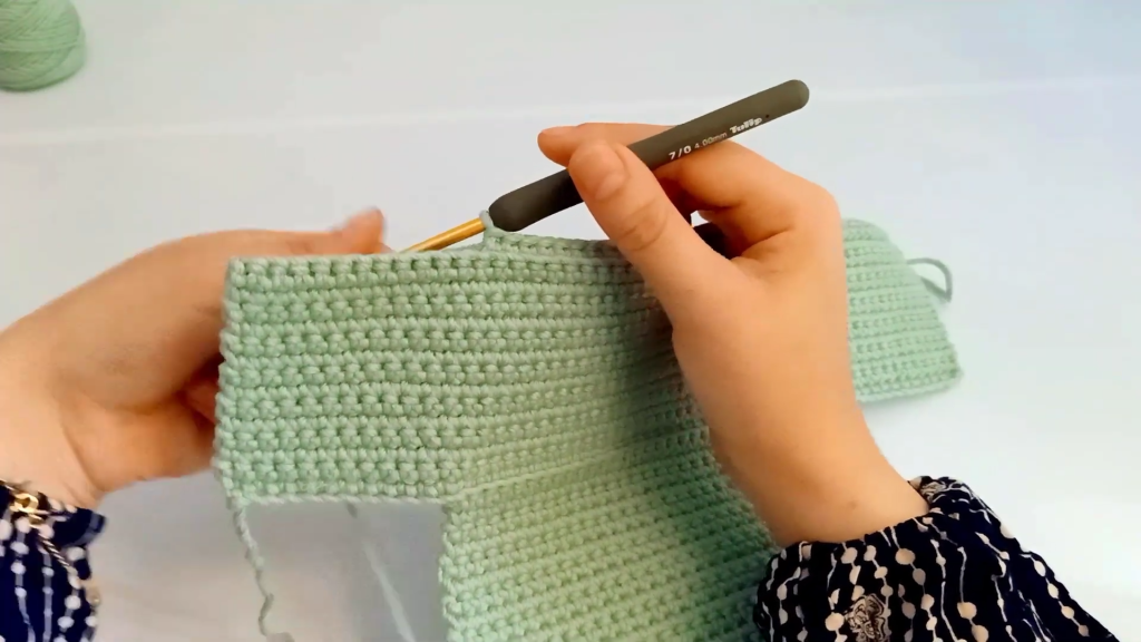 - Height: Work for 18 rows in total. This creates a flap that sits inside the bag.