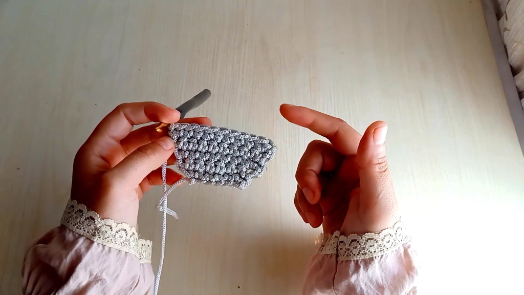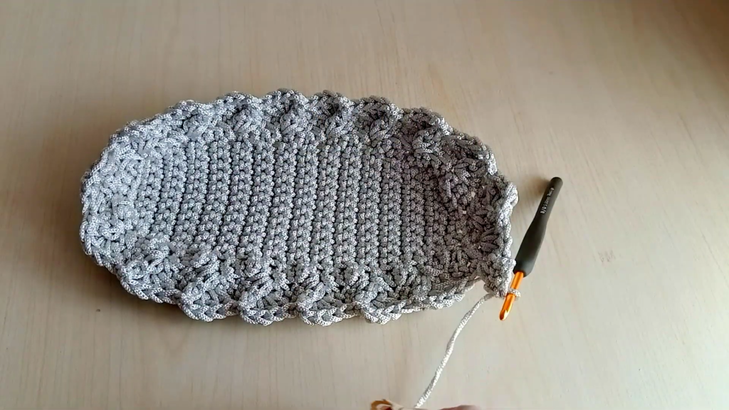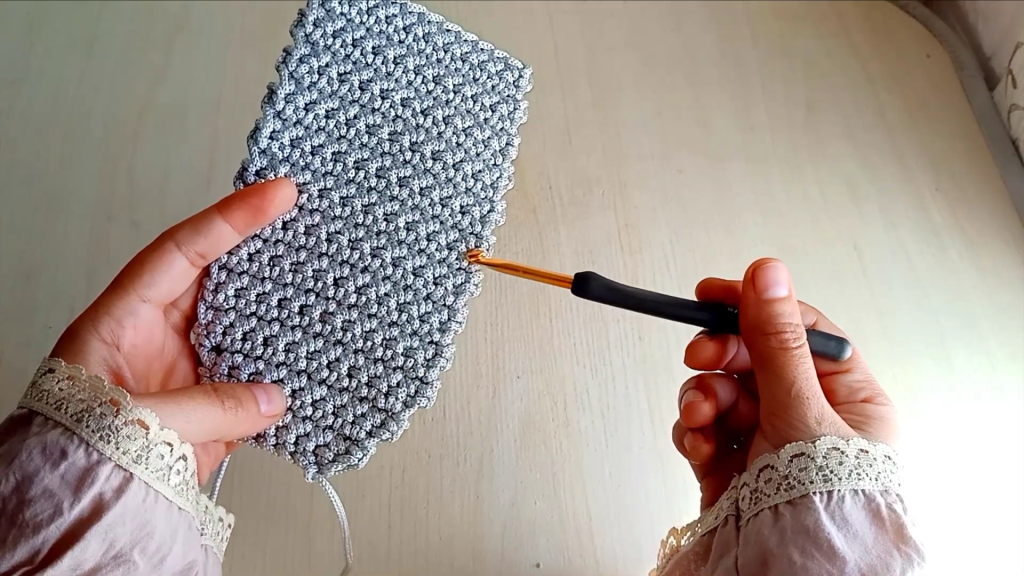 Height: Continue repeating this textured pattern until the bag reaches approximately 16 cm in height (roughly 11 rows of the petal pattern).