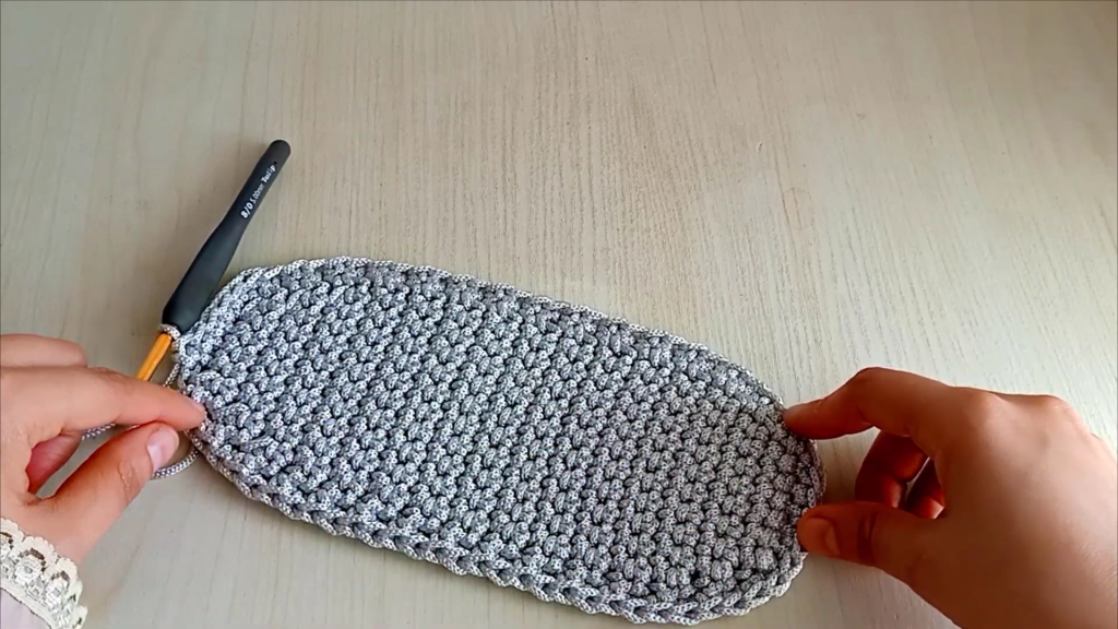 The Perimeter: To transition from the flat base to the walls, work one round of SC around the entire edge of the base. Work 30 SC along each long side and 5 SC across the short ends. This will give you a total of 70 SC around the perimeter.
