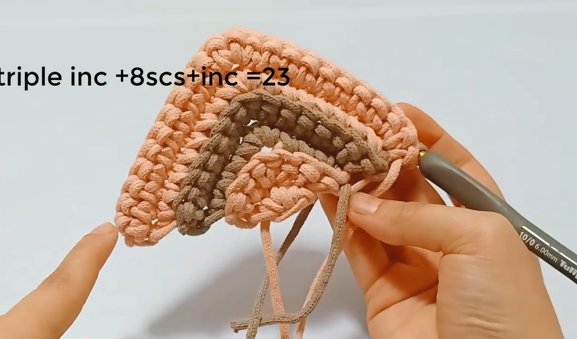- Row 2 (First Increase): Chain 1, turn. Work an increase (2 SC) in the first stitch. In the middle stitch, work 3 SC (this is your peak). Work an increase (2 SC) in the last stitch. (Total: 7 stitches).