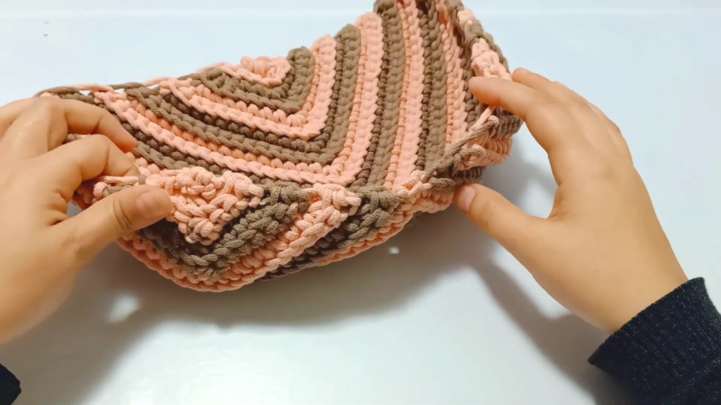 - Repeat: Attach your yarn to the second half of the bag and repeat the narrowing process from Row 19 to 27.