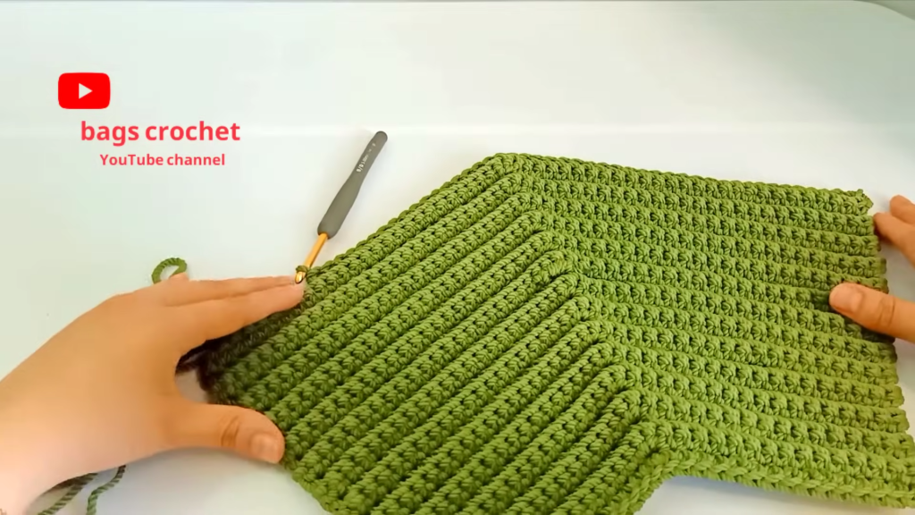 - Side Sewing: Take your 10-row depth section and fold it to meet the 10 stitches we skipped at the top edges (the HDC/SC/SLST sections). Using your tapestry needle, sew these edges together. Repeat for both sides of the panel.