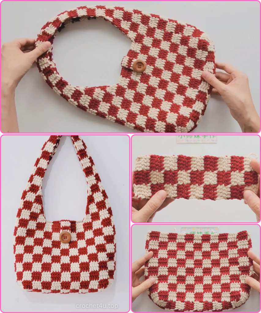 Welcome to your next favorite project! If you’ve been searching for a bag that combines retro aesthetics with modern functionality, this Checkerboard Underarm Bag (also known as a “baguette” or “hobo” style) is the perfect choice. This pattern uses a clever color-changing technique to create a seamless checkerboard grid, making it both durable and incredibly stylish.