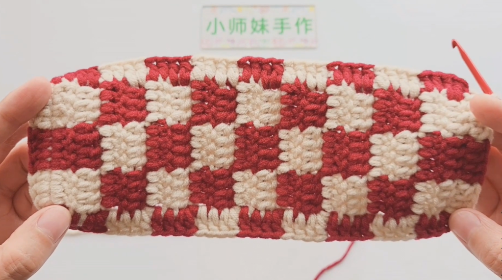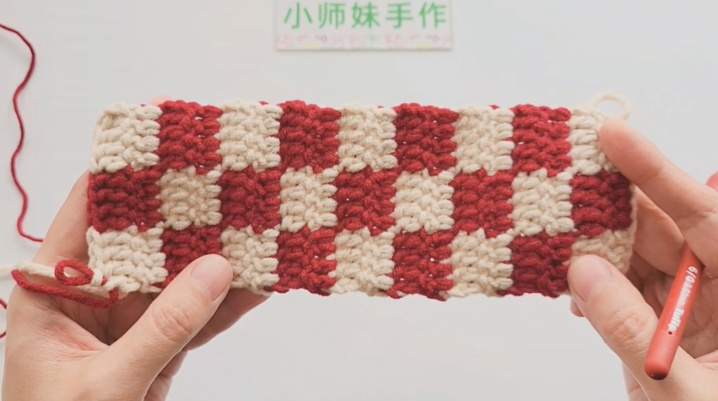 - The Grid Shift: After every 2 rows, swap your starting color (e.g., start with 4 Cream, then 4 Red, then 4 Cream) to create the “checkered” blocks.