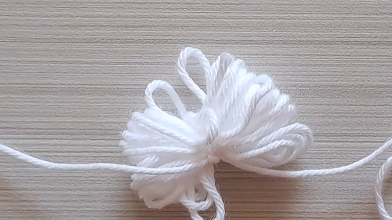 - Wrap the white yarn around your fingers multiple times (as shown in the video, [13:34]). The more wraps, the fluffier the pompom.