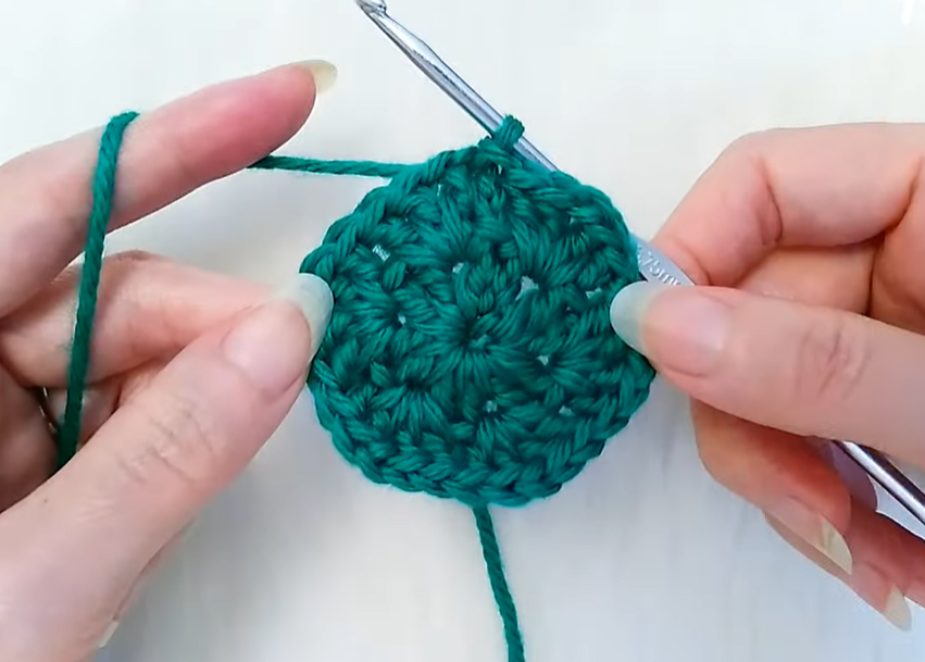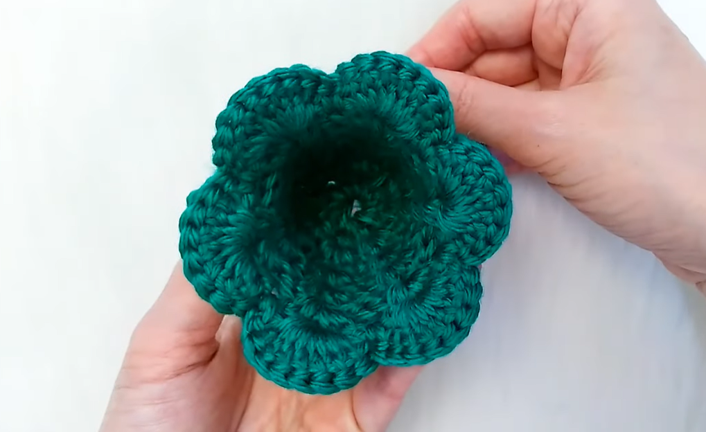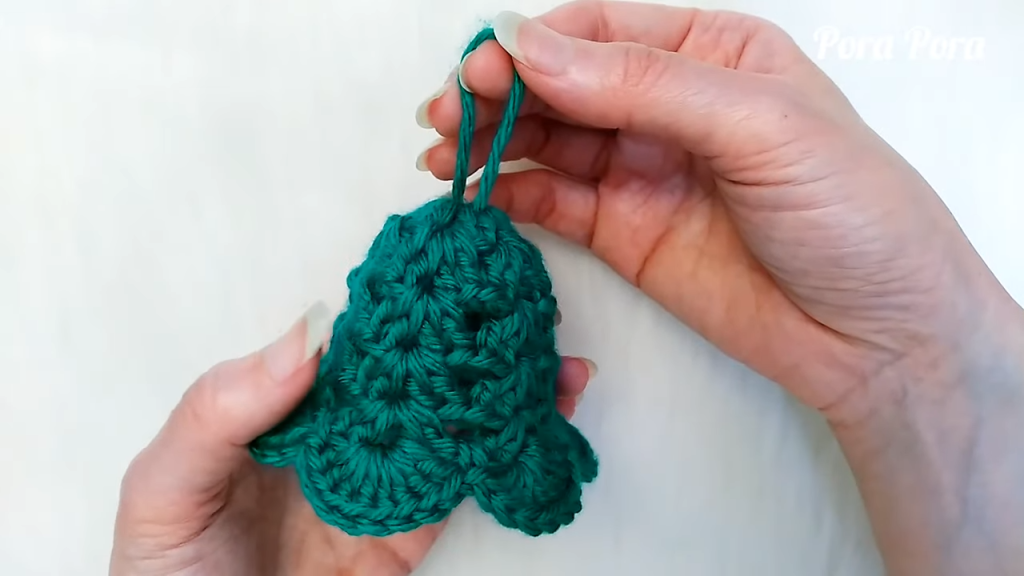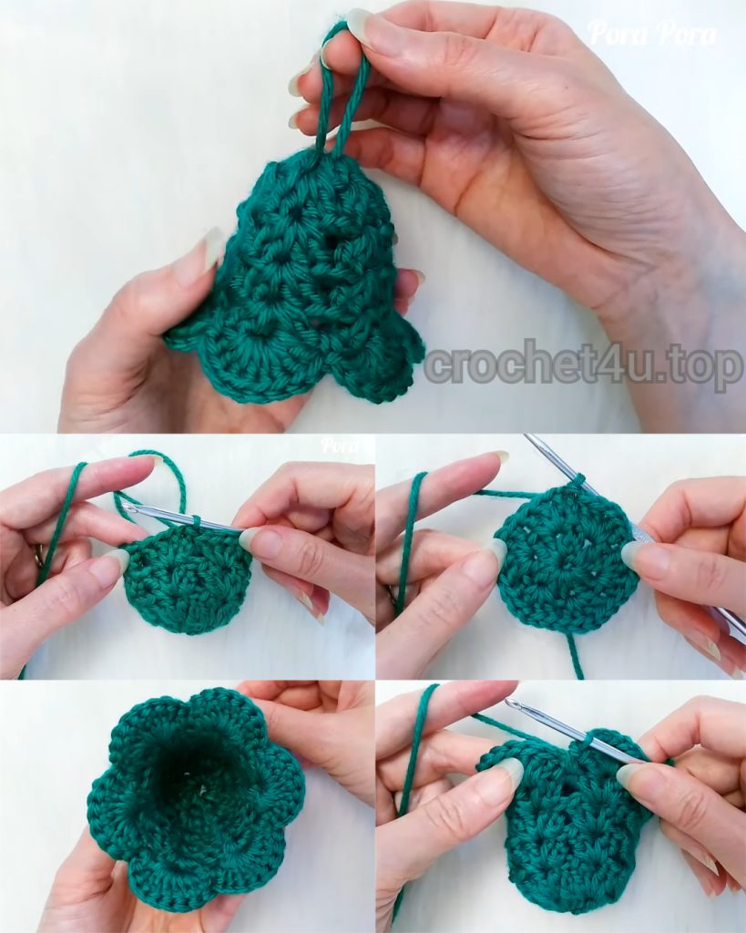 - Sl st back into the same stitch where you joined the yarn at the top of the bell.
