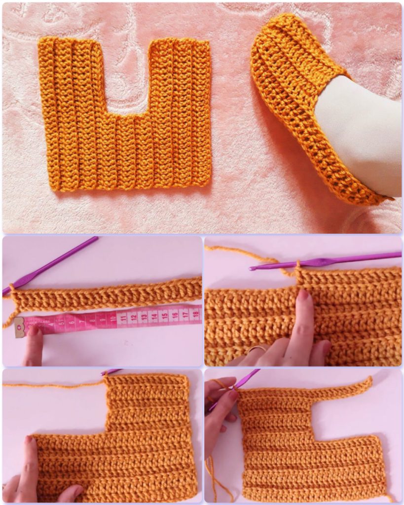Once you’ve reached the desired length for your sole, fold your work in half, aligning the sides. Now, single crochet through both layers to close the heel of the slipper securely. This will ensure a snug fit for your heel.