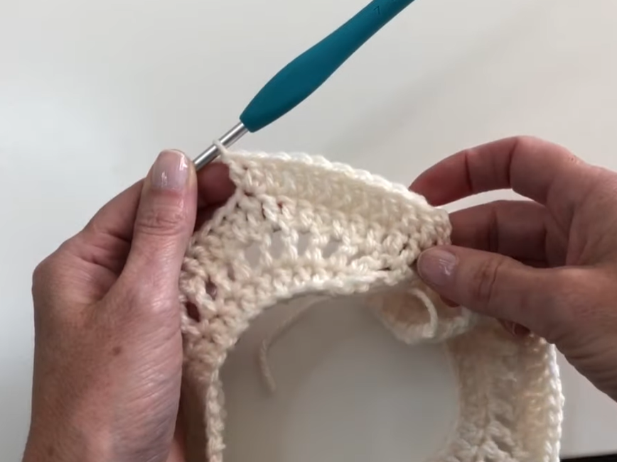 Round 2–4: Ch 3, fpdc around next st, dc in next st. Rep around. Join. (This creates a textured rib effect for the neckline.)