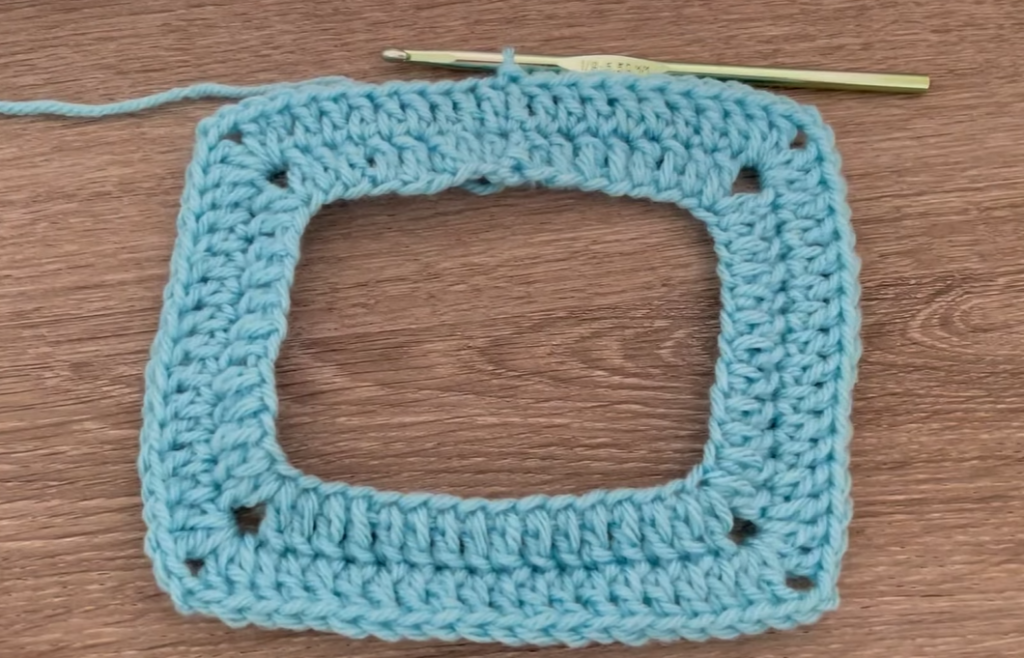 Rows 3-7: Repeat Row 2. Continue the pattern of increasing by 4 dc in each of the 4 corner ch-1 spaces every row. The yoke will take on a square/trapezoid shape.