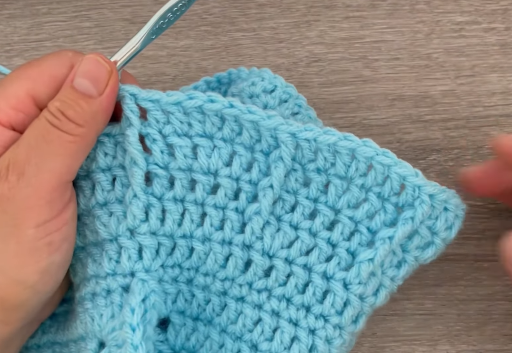 3. Attach yarn at the bottom left corner. Sc evenly up the entire left side of the opening.