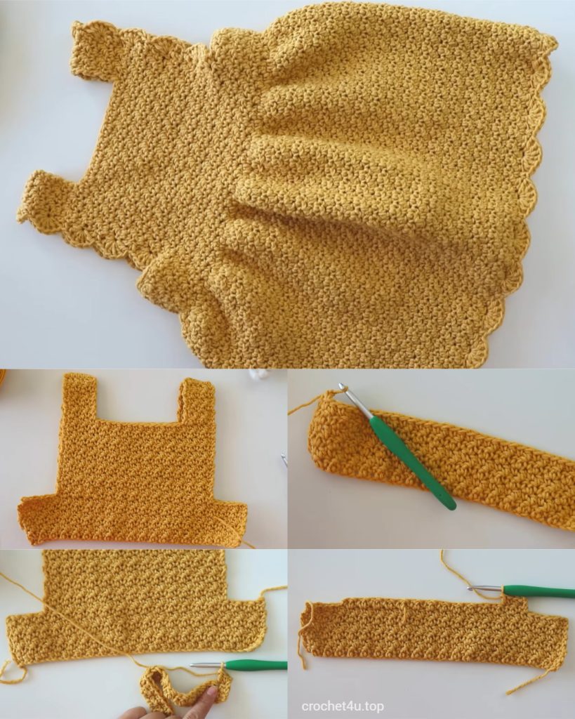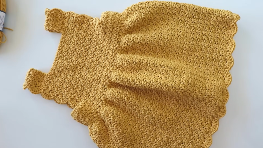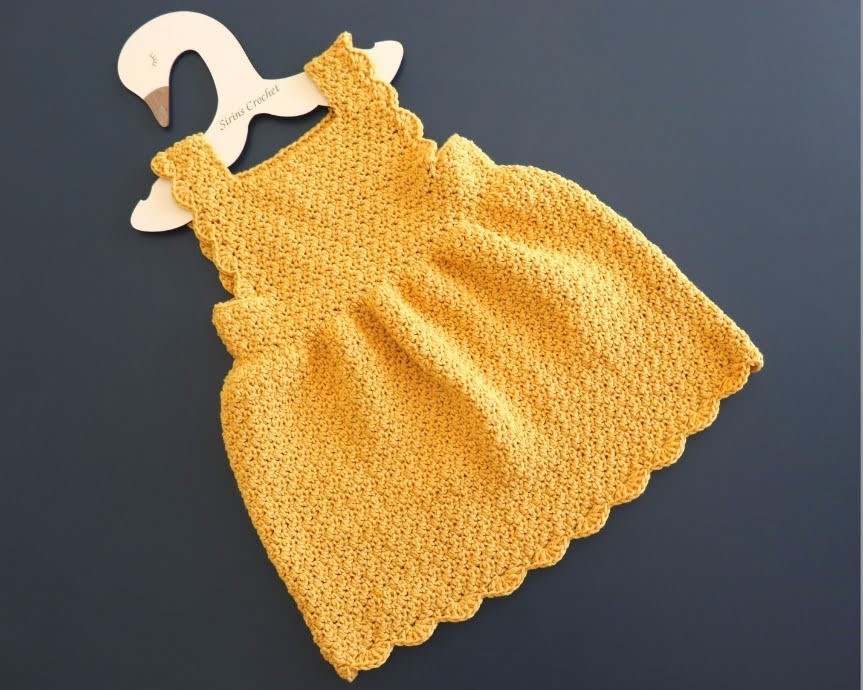 Welcome to the perfect summer crochet project! The beautiful baby dress in this image is a celebration of simple elegance and rich texture. Crafted entirely in a vibrant mustard yellow, its dense, woven look comes from an easy-to-master stitch that creates a lovely, structured drape. With its classic A-line shape, simple shoulder straps, and charming scalloped edges, this dress is sure to be an heirloom piece.
