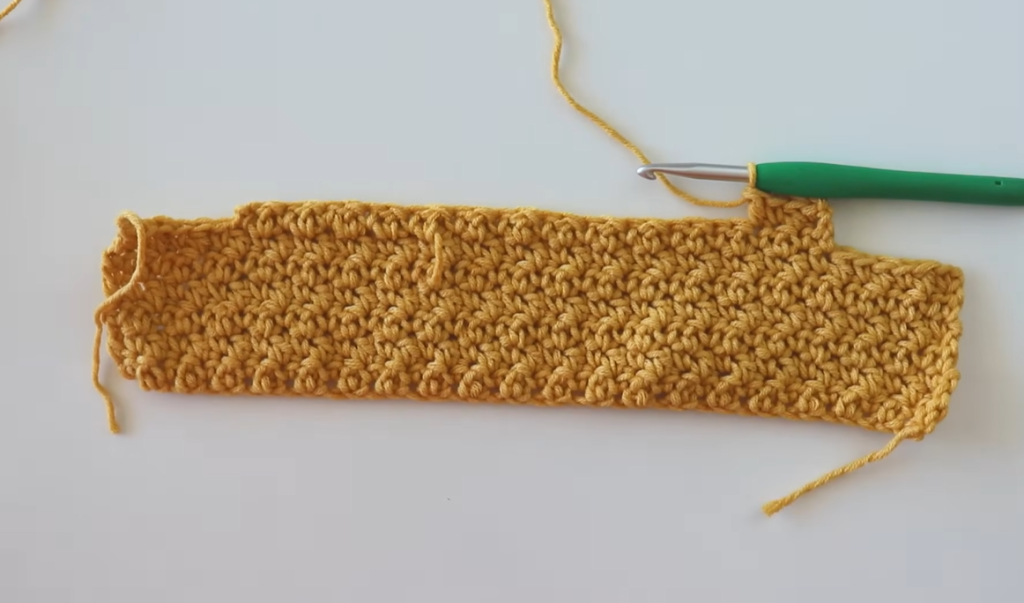 Rows 3-20: Repeat Row 2. Continue working the Lemon Peel Stitch, remembering to always work an sc into a dc and a dc into an sc. (75 sts)