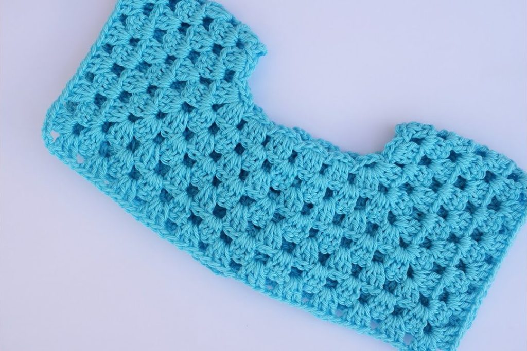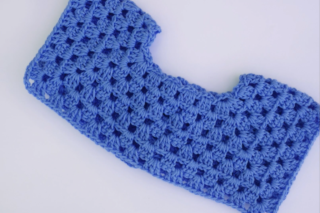 - Right Back Edge: Attach yarn to the bottom of the right back opening. Sc evenly up the edge. Fasten off.