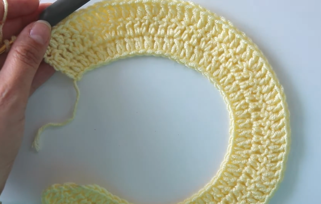 - Sc evenly up the side of the opening, around the neckline, and down the other side of the opening.