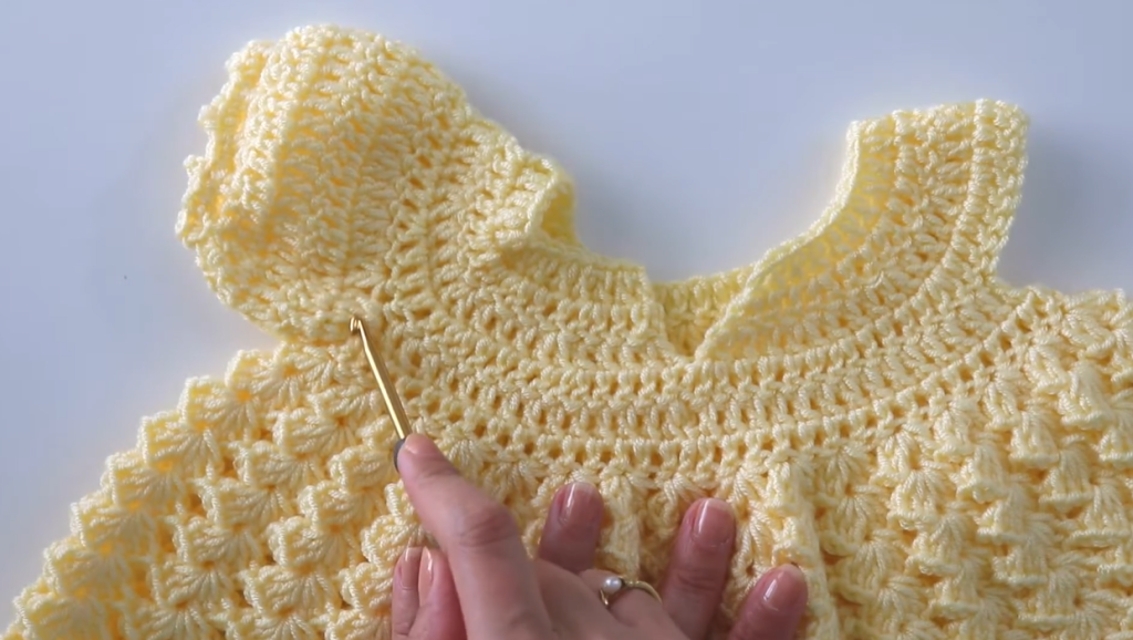 Repeat Round 11 until the dress reaches the desired length, approximately 12-14 rounds total (or about 10-12 inches from the yoke to the hem).
