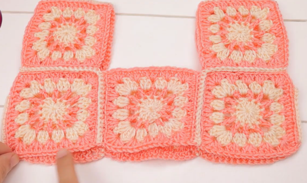 Now we assemble the squares using a simple Sl St seam (or Sc seam, if preferred) along the joining edges.