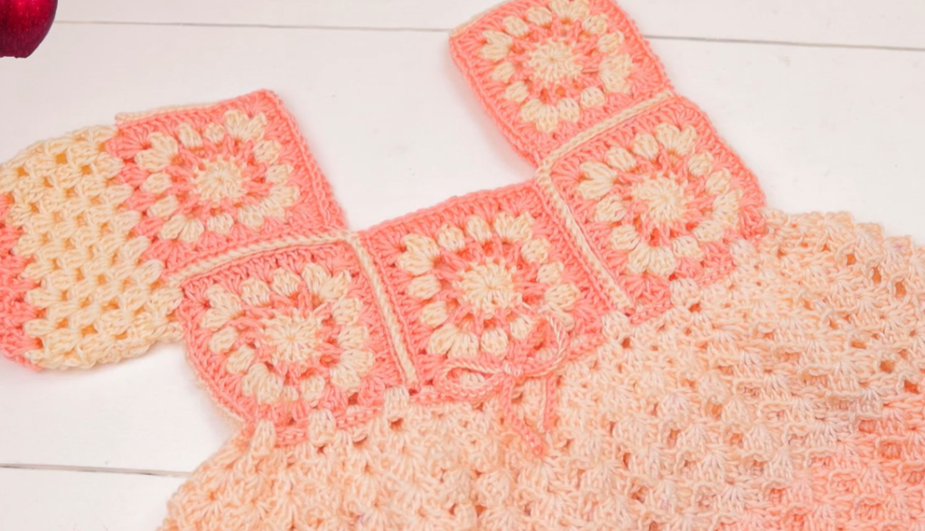 Hello, creative crafters! Get ready for a truly special project: the Sunset Square Yoke Dress. This design stands out with its eye-catching constructionβa yoke built entirely from classic Granny Squares, giving it a beautiful structured top and sleeves. The lower body flows out in a gorgeous shell stitch pattern, perfect for showcasing an ombrΓ© or variegated yarn like the one in the photo!