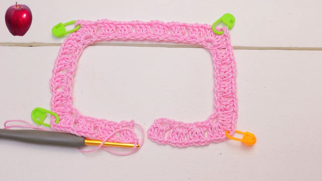 Row 4 (Shell Row): Dc in the first st. Sk 2 sts, 5 Dc Shell in the next st. Rep until the Ch-2 sp. Work (5 Dc Shell, Ch 1, 5 Dc Shell) into the corner Ch-2 sp (This is your increase corner). Continue the shell pattern across the panel, placing (5 Dc Shell, Ch 1, 5 Dc Shell) in the remaining three corner spaces. End with a Dc in the last st (the top of the Ch 3). Ch 3, turn. (Increases shell count by 8).