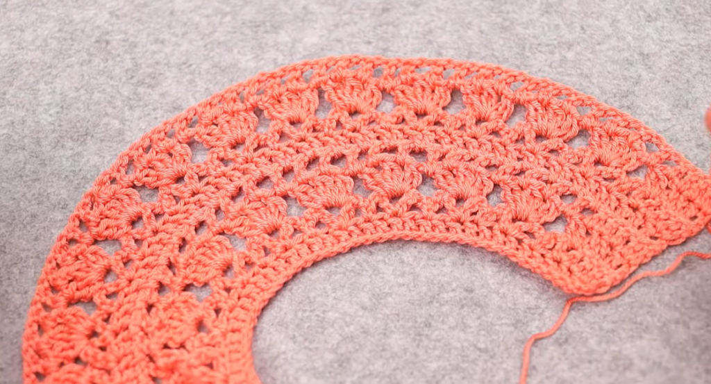 - Round 3 (Solid Row 1): Ch 3. Dc in the next st. (Dc in the Ch-1 sp, 3 Dc in the Ch-1 sp of the V-st (a small shell), Dc in the Ch-1 sp. Dc in the next 2 sts). Rep from the parentheses around. Join with Sl St to top of Ch 3. (This round increases the stitch count by adding shells inside the lace spaces, creating the flare).