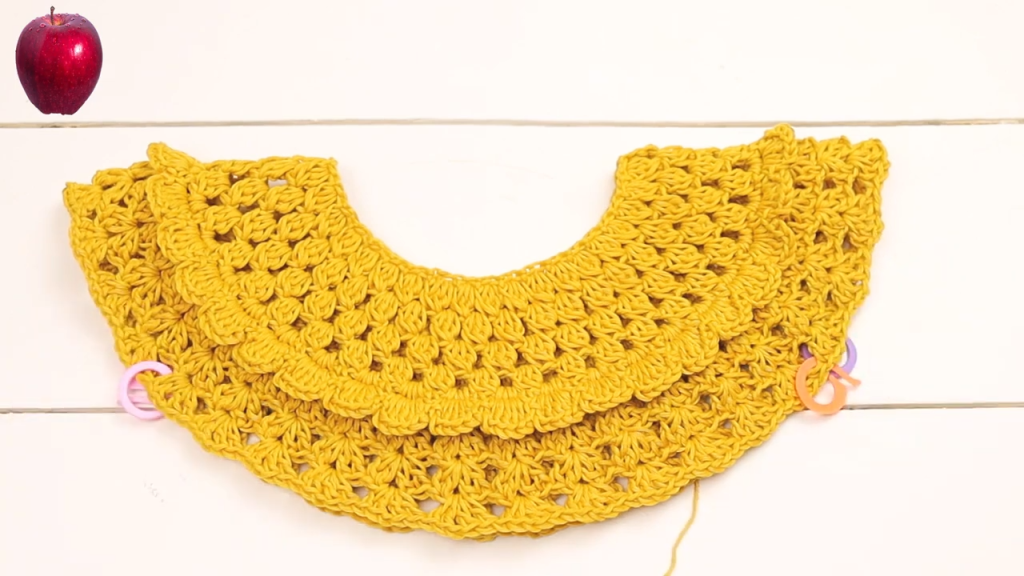Hello, fellow yarn enthusiasts! Get ready to create a piece that is both elegant and cozy: the Golden Honeycomb Ruffle Top. This design features a continuous, dense Fan/Shell Stitch throughout, but the real highlight is the layered, scalloped ruffle yoke, which adds a charming and voluminous frame around the neckline. Worked in a rich, single color like mustard or gold, this top’s incredible texture speaks for itself.