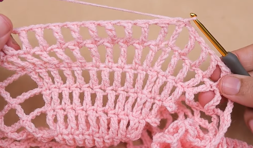 • Row 4 (Texture Row): Dc in the first st. (Ch 1, Sk 1 st, Dc in the next st) until the Ch-2 sp. (Dc, Ch 2, Dc) in the Ch-2 sp. Continue the (Ch 1, Sk 1 st, Dc) pattern across all panels, putting (Dc, Ch 2, Dc) in each corner Ch-2 sp. Ch 3, turn.