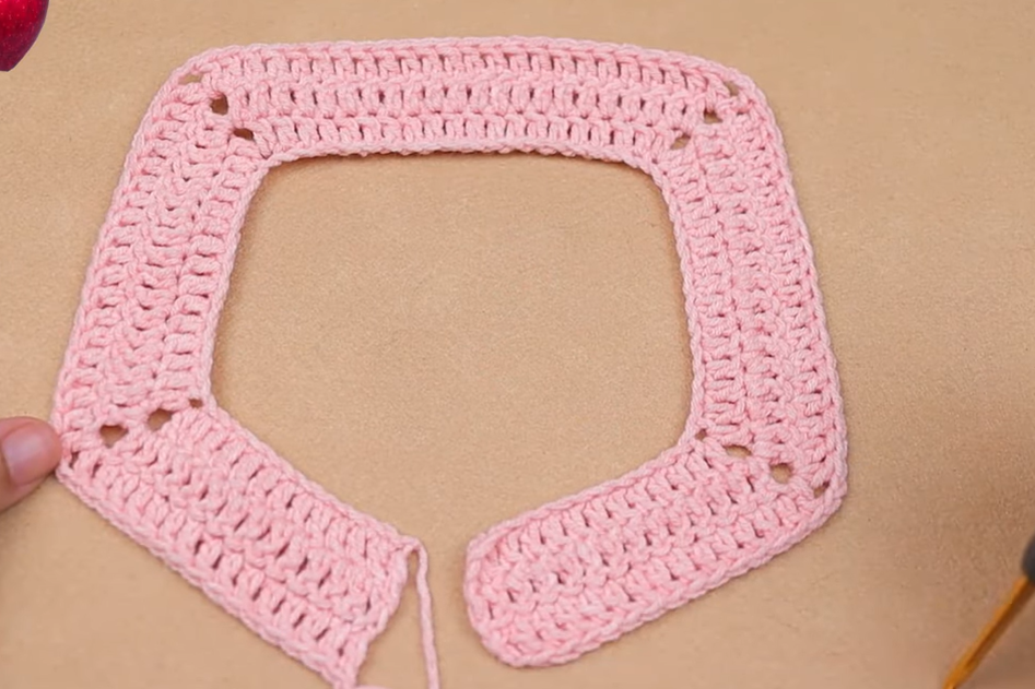 2. Buttonhole Band: Use the opposite side. Work one row of Sc. In the next row, create the 3 buttonholes (Ch 1, Sk 1 st) evenly spaced. FO.