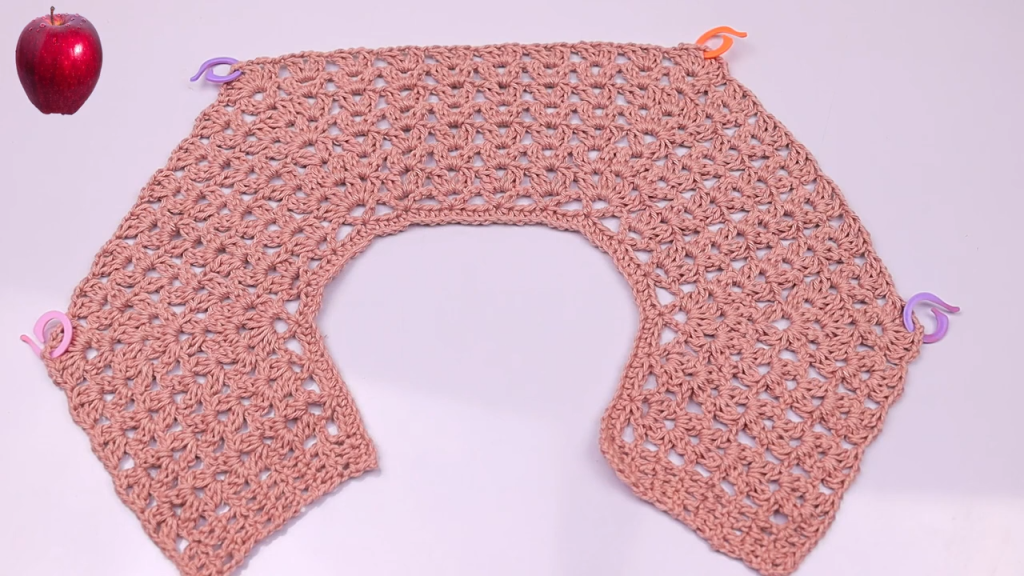 - Neckline & Back Slit: Join Yarn A at the bottom of the back opening. Ch 1, Sc evenly up the edge, around the entire neckline, and back down the other side of the slit. FO.