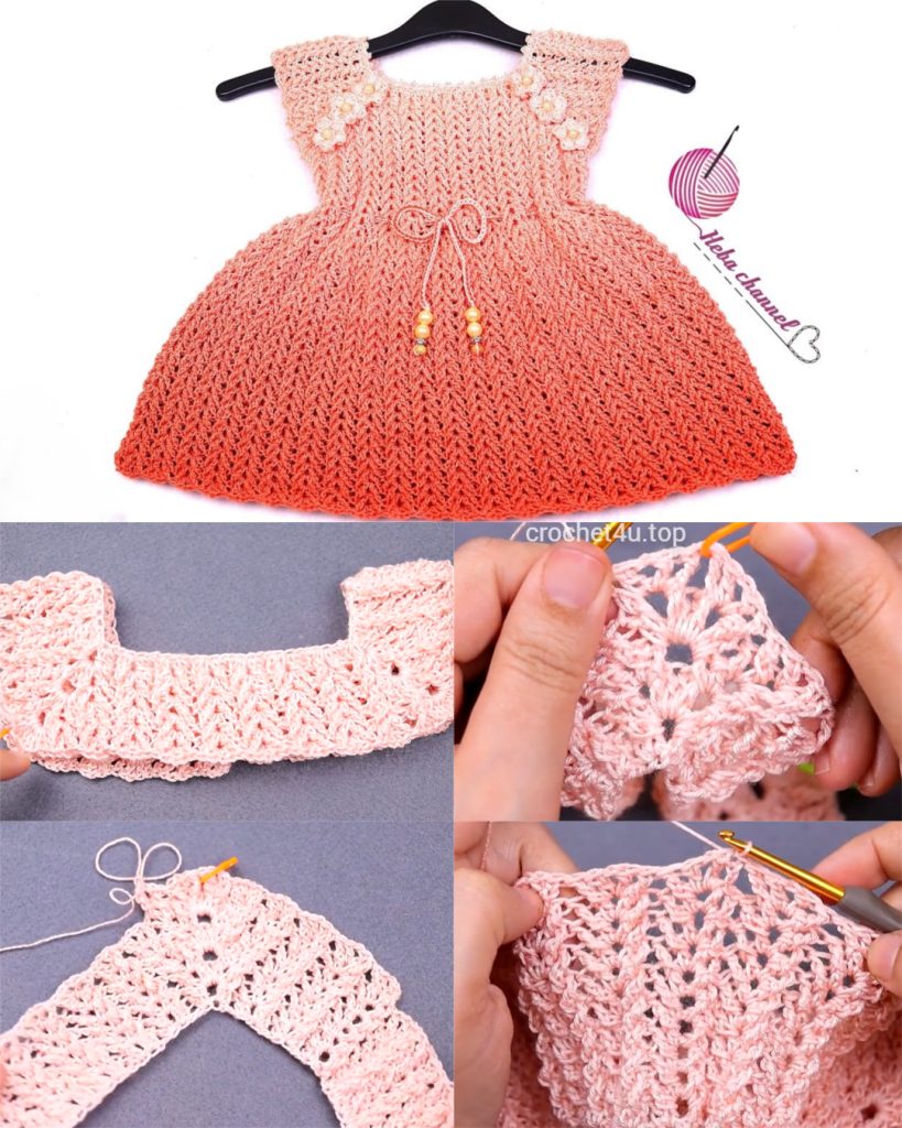 Hello, creative crocheters! Get ready to capture the warm hues of dawn with the Peach Sunrise Dress. This charming dress features a classic top-down construction, pairing a delicate, lacy yoke with a wide, flowing skirt that utilizes a repeating V-stitch pattern. The stunning ombrรฉ effect, transitioning from a soft peach to a vibrant coral, gives this dress its unique appeal. Finished with sweet floral appliques and a beaded drawstring, this is a showstopper piece!