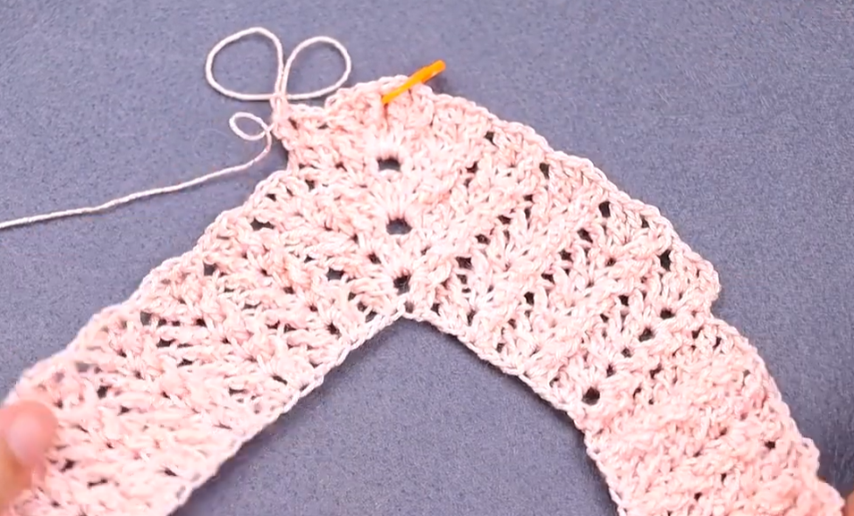 Rows 5-8: Repeat Rows 3 and 4 (alternating solid and V-stitch rows) until the yoke measures approximately 5-5.5 inches (12.5-14 cm) from the top.