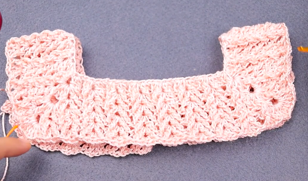 - Button Band: Use one side of the back slit. Sc evenly up the edge.