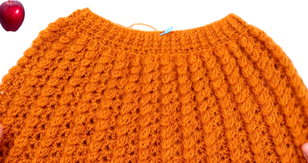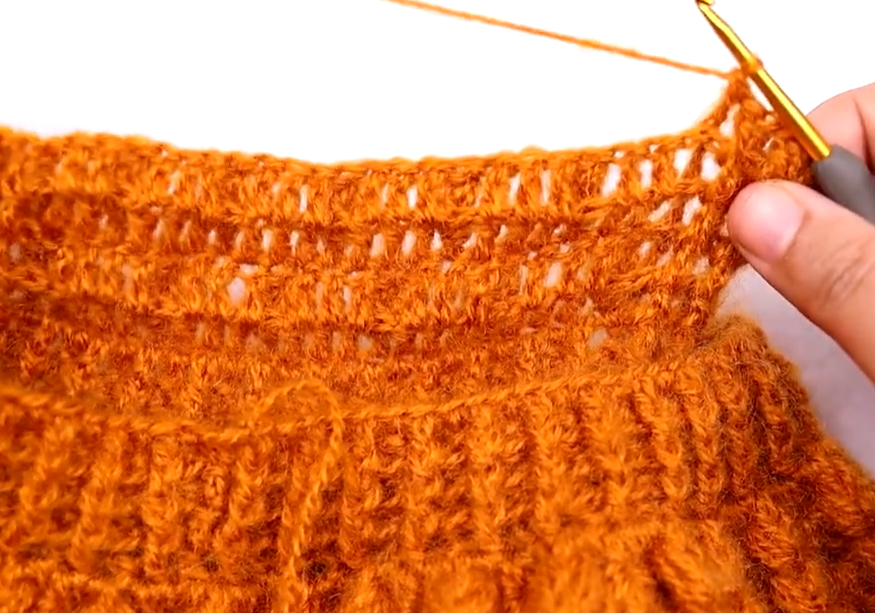 • Neckline & Armholes: Join yarn and Sc evenly around the raw edges of the neckline and armholes for a neat finish.