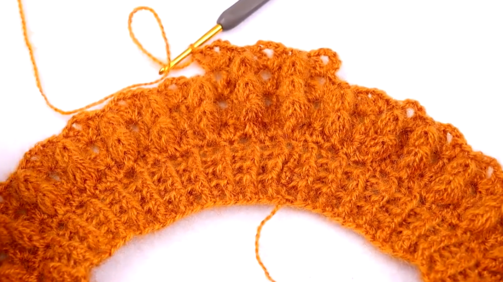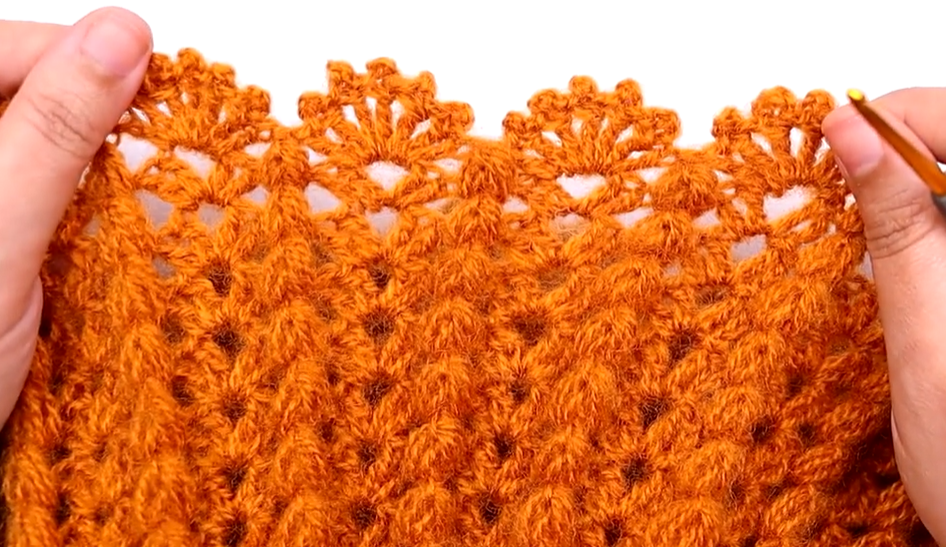 • End on a Puff Stitch Row. Sl St into the final Ps Ch-1 space. FO. The puff stitch texture creates a natural, dense edge.