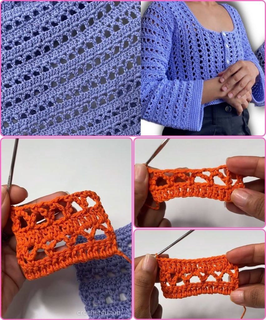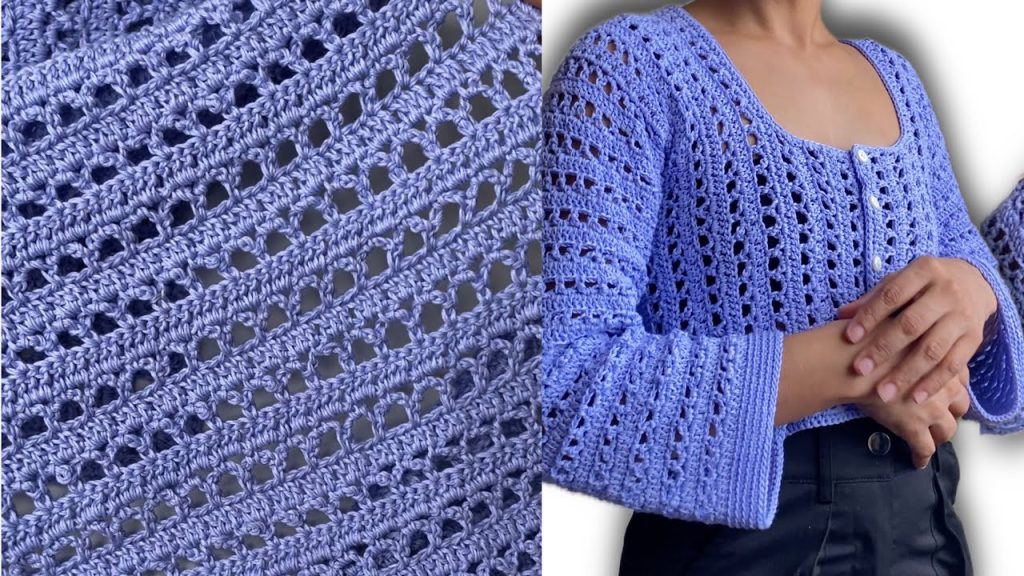 This stitch is famously used for summer blouses because it features “solid” rows that provide coverage, alternating with “open” rows that let the breeze through. It creates a sturdy netting effect that holds its shape beautifully without sagging. Whether you are planning a beach cover-up, a light cardigan, or a table runner, this pattern is your new best friend.